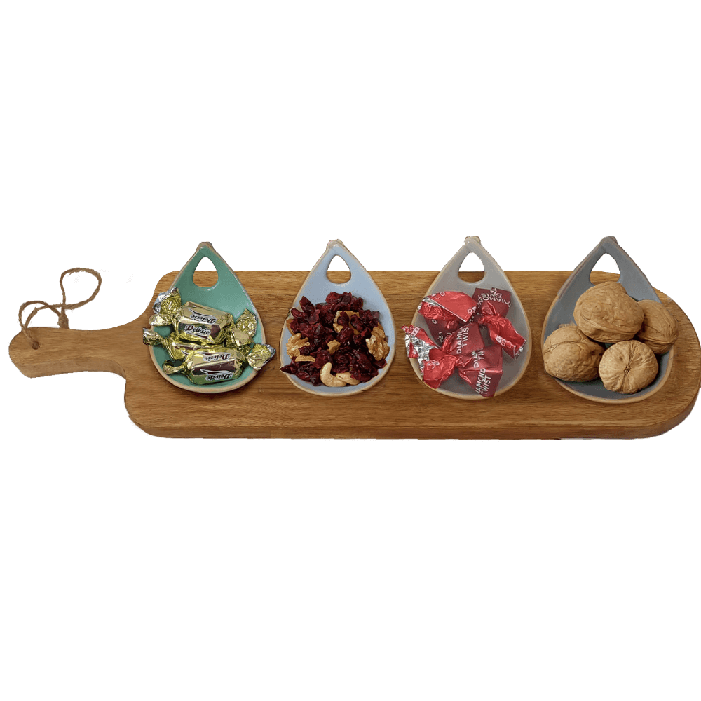 קרש חיתוך יוקרתי עם קעריות קרמיקה המכילות 5 אגוזי מלך, 8 פרלינים ו-60 גרם מיקס בריאות. מתנה לפסח עם טאץ' קולינרי ועיצוב קפדני – הבחירה המושלמת למתנות פסח לחברות או לארגונים שרוצים להפתיע בסטייל.