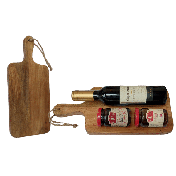 מארז יוקרתי הכולל קרש חיתוך מעץ מנגו, בקבוק יין 375 מ"ל, ממרח מתוק 120 גרם וחרוסת 120 גרם. מתנה אלגנטית שמחברת בין מסורת לטעמים חגיגיים, ומשדרת השקעה אמיתית.