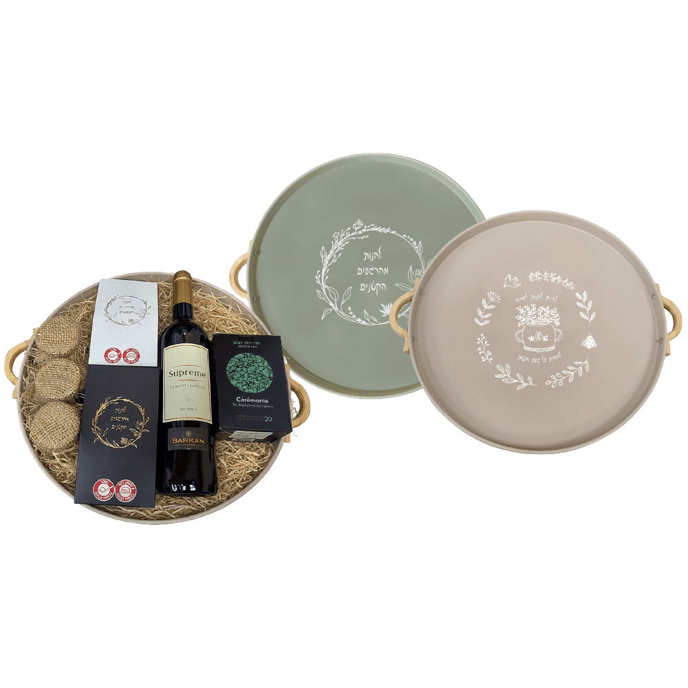 מגש פח עגול ומרשים בקוטר 38 ס"מ, הכולל יין 750 מ"ל, שוקולד לבן עם קרמל מלוח, 3 חליטות פירות, מארז שקיקי תה מבית סרמוני, צימוקים מצופים שוקולד לבן ובוטנים מצופים. מארז מתנה לפסח עשיר ומגוון בטעמים – שילוב של יוקרה ומתיקות חגיגית.