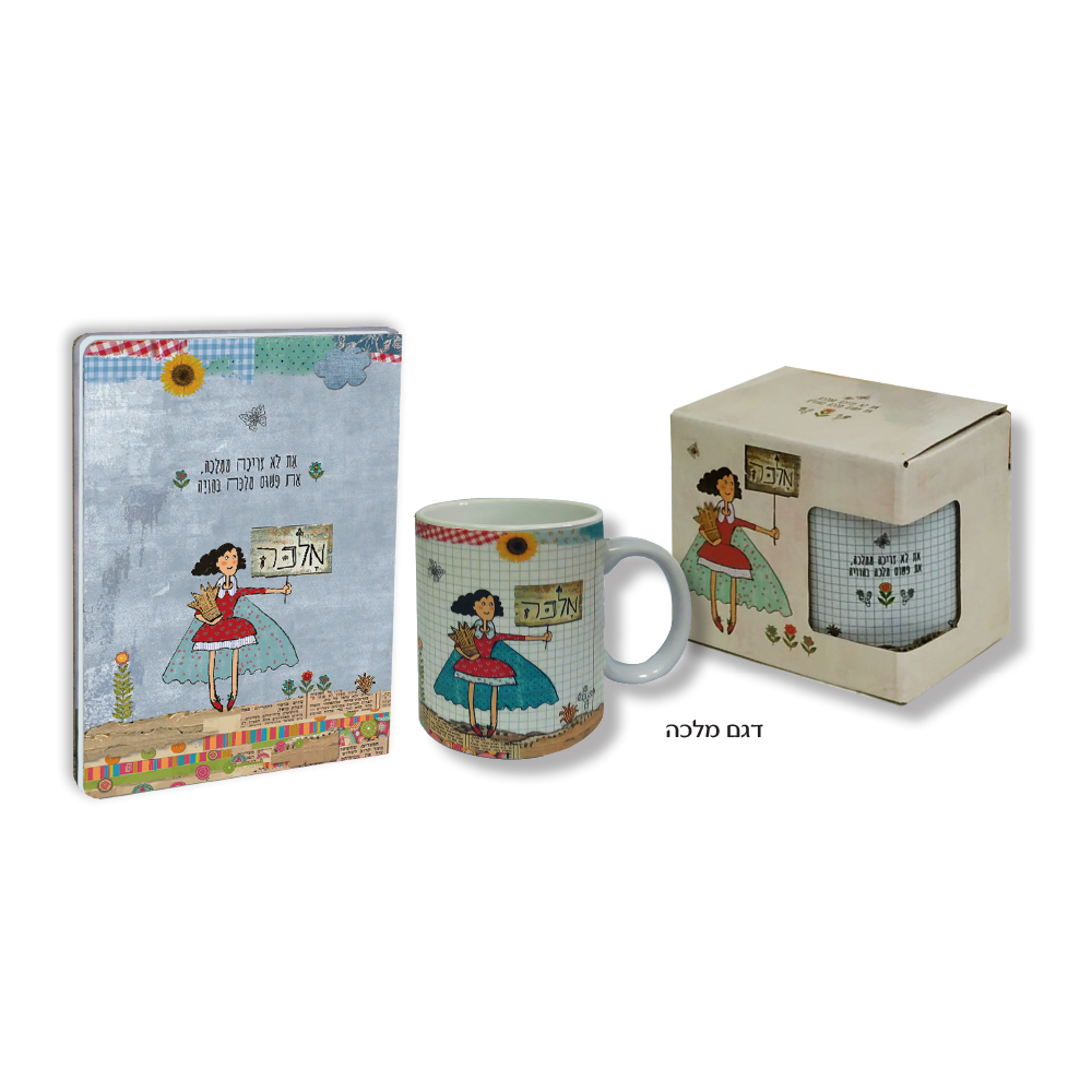 מחברת שורות מאויירת עם כריכה קשה ומארז ספל מעוצב גודל המחברת 15×21 ס"מ