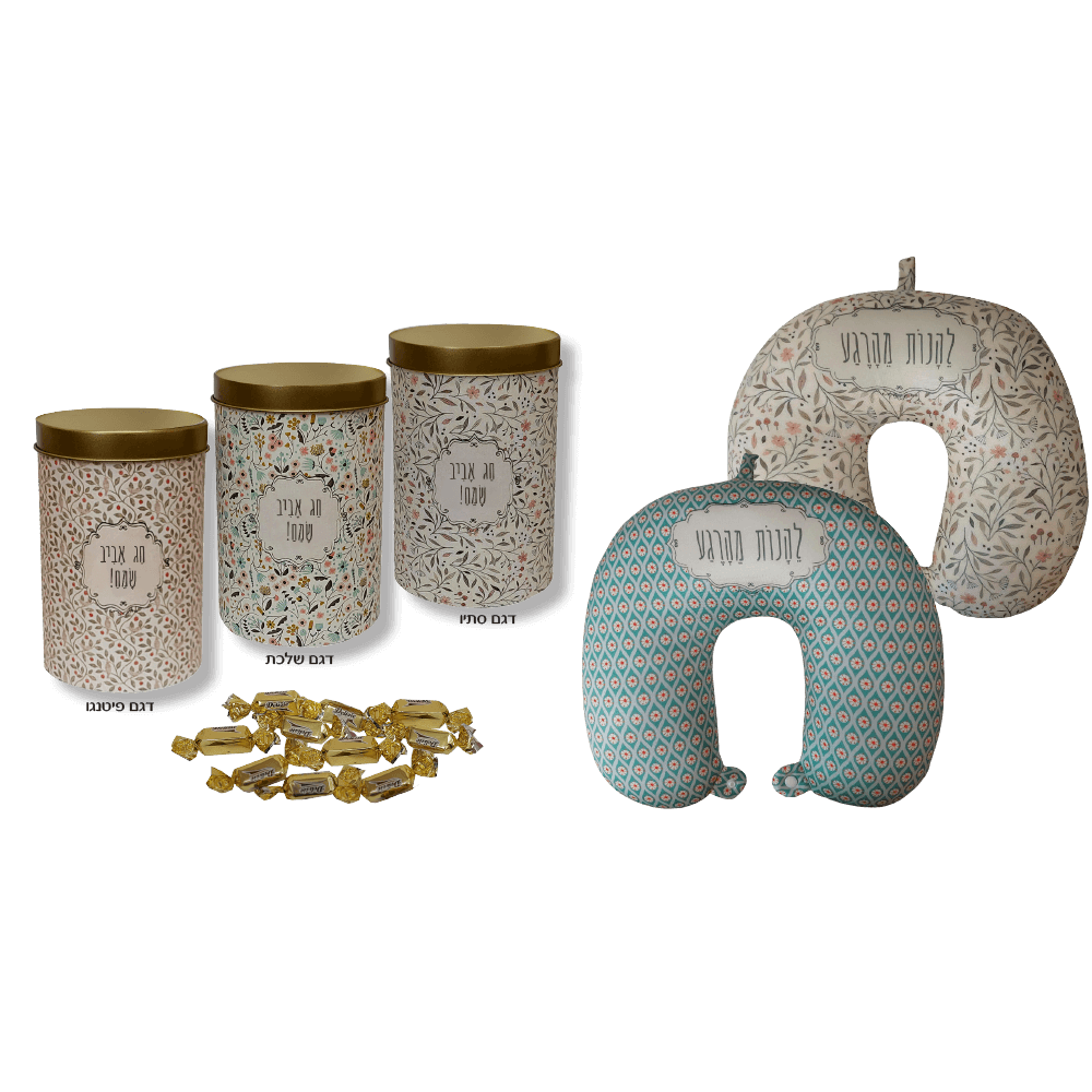 🛏️ כרית צוואר רכה ונוחה – לתמיכה מושלמת בשעת נסיעה או מנוחה 🍬 קופסת פח מהודרת – מלאה ב-10 פרליני שוקולד איכותיים 🎁 שילוב מרענן ומפנק – נוחות ומתיקות בעיצוב אביבי מושלם לחג