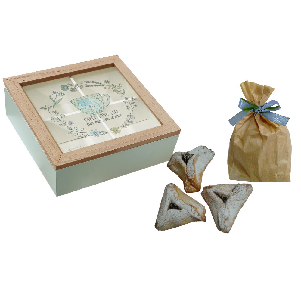 קופסת עץ מהודרת ומעוצבת לחליטת תה – עם כיתוב חמים ומעודד, בעיצוב טבעי ונעים לעין. לצד הקופסה תמצאו 3 אוזני המן בשקית נייר, מה שהופך את המארז הזה למתנה לפורים בעלת אופי אישי, קלאסי ומרגש.