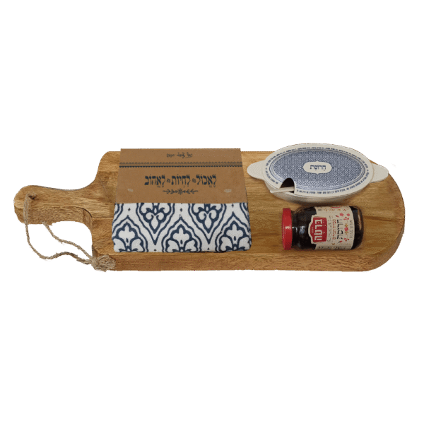 מארז איכותי על קרש עץ עם כלי לחרוסת, זוג מגבות מטבח וחרוסת מסורתית. מתנה לפסח עם ערך רגשי שמתחברת ישירות לאווירת החג. פתרון מושלם לארגונים שמחפשים מתנות לפסח עם משמעות עמוקה ושימושיות גבוהה.