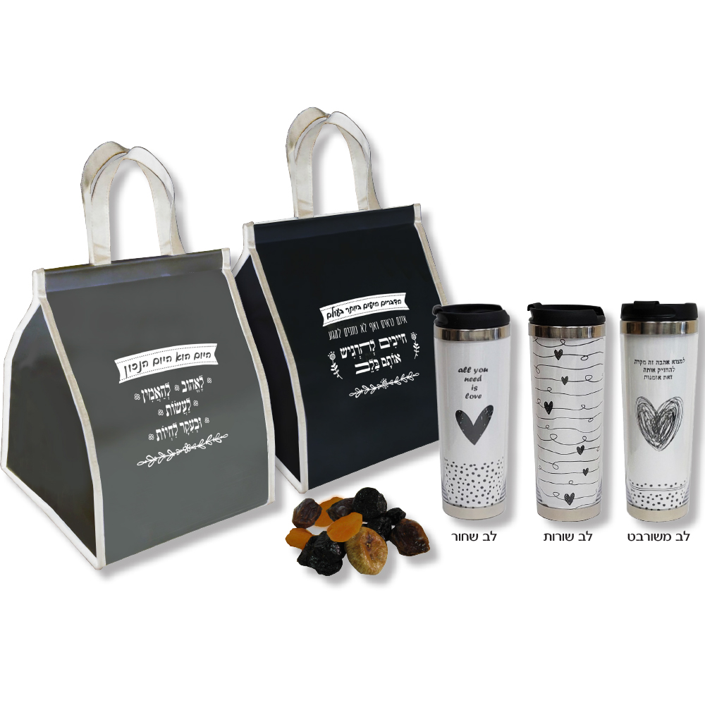 כוס תרמית, צידנית משפחתית ו-150 גר' פירות יבשים גודל הצידנית 30×40 ס"מ