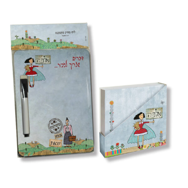 לוח מחיק ודבקיות ממו גודל הלוח 15×20, גודל מארז לדבקיות 10×10 ס"מ