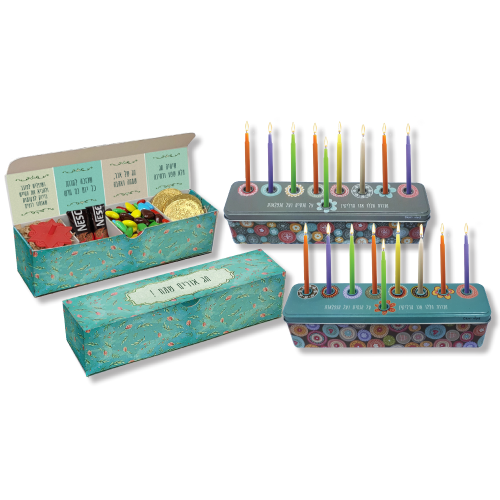 מארז ברכות לחנוכה וחנוכיה