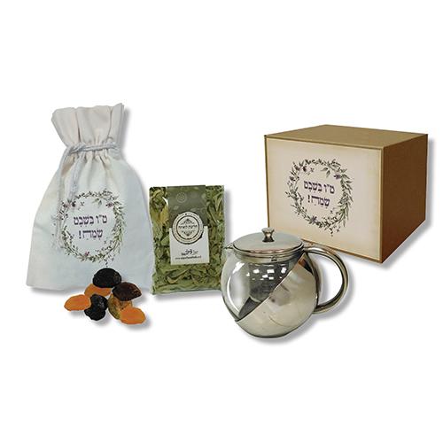 מארז חורש לטו בשבט עם קנקן לחליטה, שקית כותנה עם 100 גרם פירות יבשים וחליטת צמחים גודל השקית 24×17 ס"מ, תכולת הקנקן 1100 מ"ל