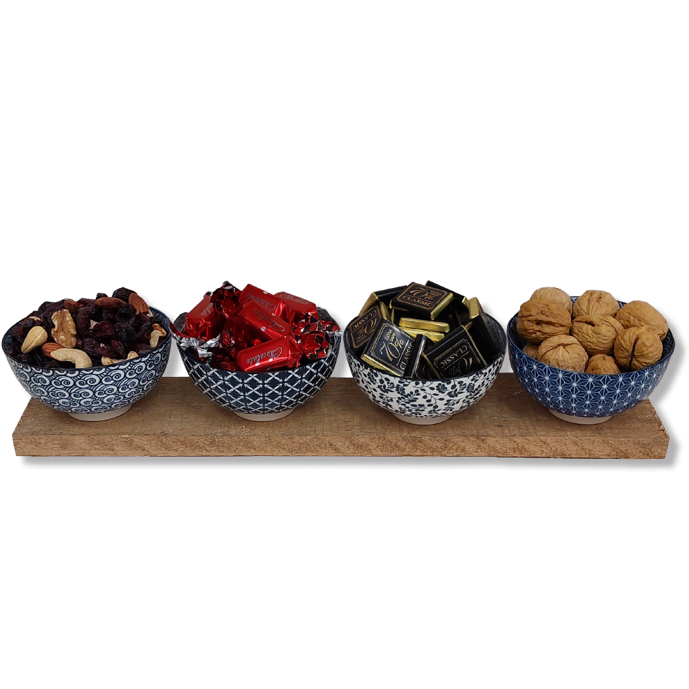 גודל הקערית 11.5×6 ס"מ, הקעריות מגיעות על לוח עץ