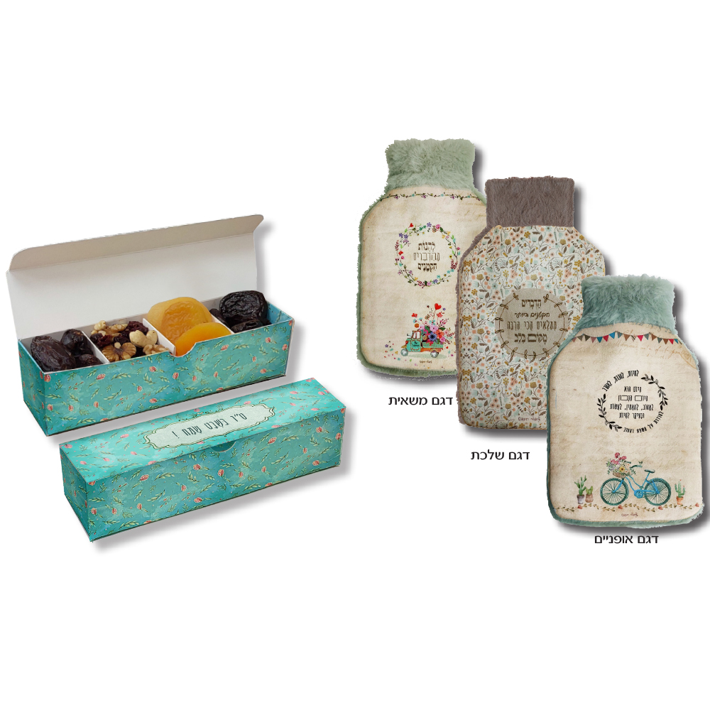 מארז לט"ו בשבט המכיל 160 גרם פירות יבשים, מיקס בריאות ובקבוק חימום עם פרווה