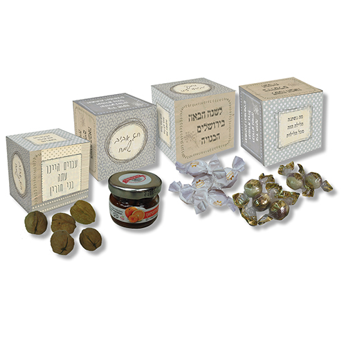 מארז לפסח במילוי פרלינים/אגוזים/ממרח מתוק 30 גרם המילוי ניתן לבחירה מידת הקופסא 7x7x5 ס"מ