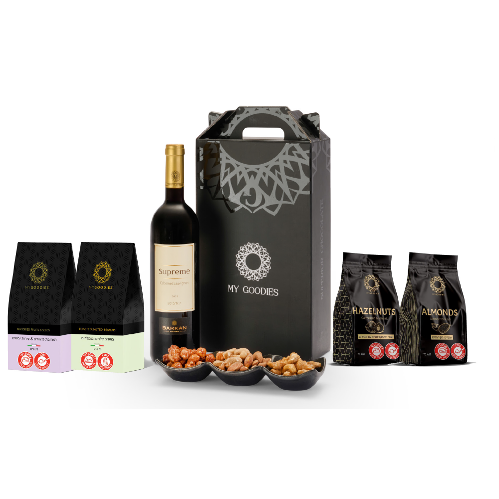 יין אדום, קברנה סובניון, 750 מל’, סדרת סופריוור, יין ארומטי ועוצמתי עם גוף עשיר ומלא, יקבי ברקן, אופאל – אגוזי לוז מקורמלים עם מלח ים, אופאל – שקדים מקורמלים, יהלום – בוטנים קלויים וממולחים, יהלום – מיקס פיצוחים וחמוציות מינימום להזמנה 54 יחידות