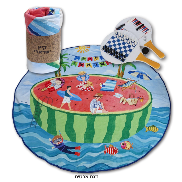 מגבת חוף ומטקות משחק קוטר המגבת 150 ס"מ