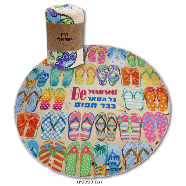 מגבת חוף קוטר 150 ס"מ תוספת 2 שח לאריזת צלופן