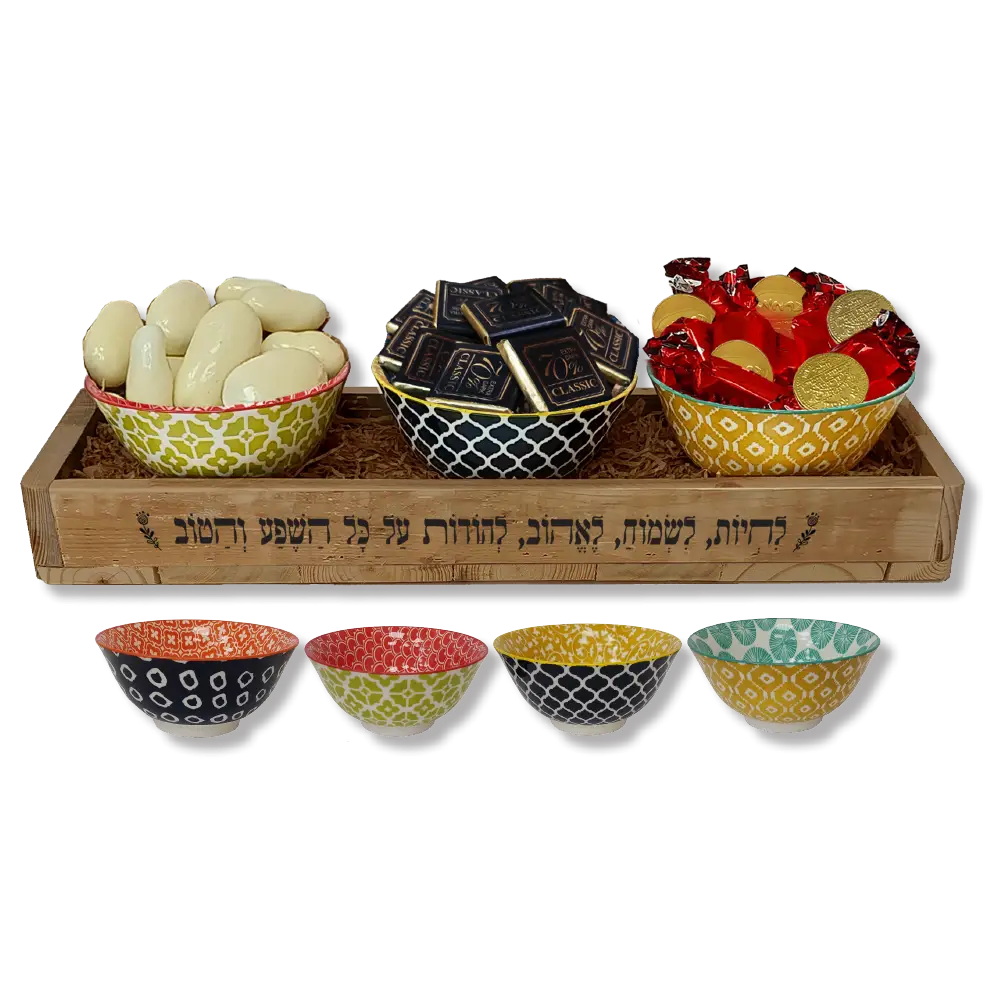 מגש חג צבעוני – מתנה לחנוכה מלאה בטעם