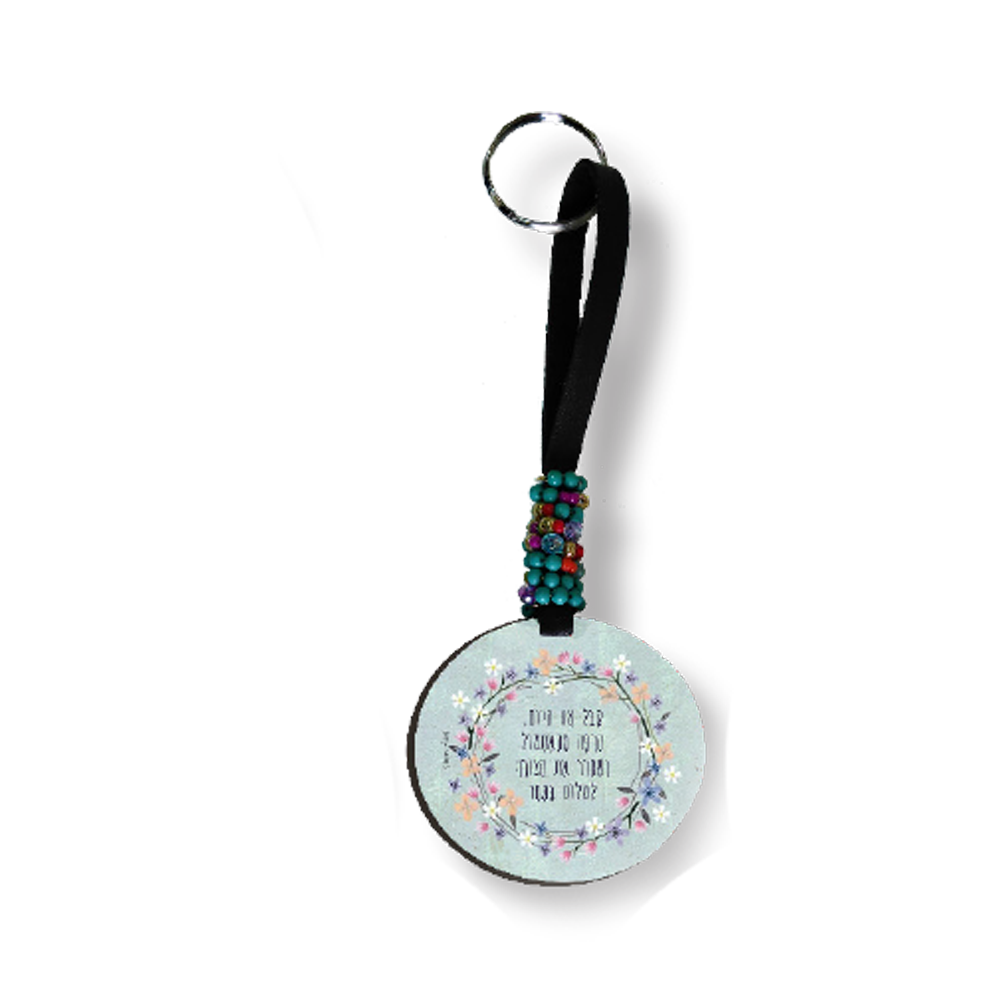 מחזיק מפתחות מעץ עם חרוזים – לגעת באושר