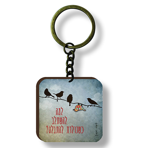 מחזיק מפתחות מעץ עם טבעת בשקית אורגנזה, מתאים גם כקישוט לתיק או לרכב