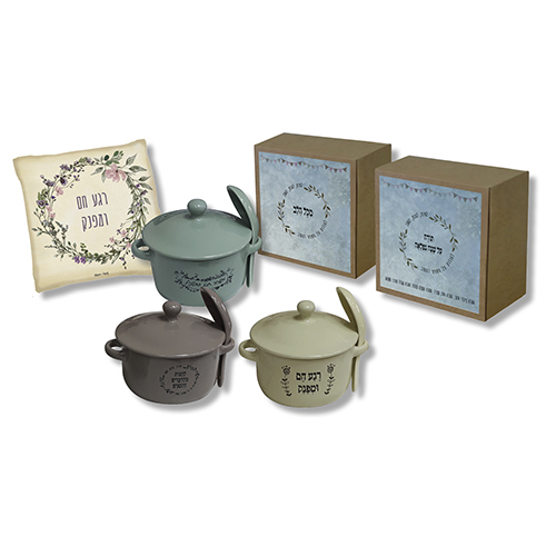 כרית 20×20 ס"מ מגיעה במבחר דגמים, הקערות מגיעות בצבעים ובכיתובים שונים