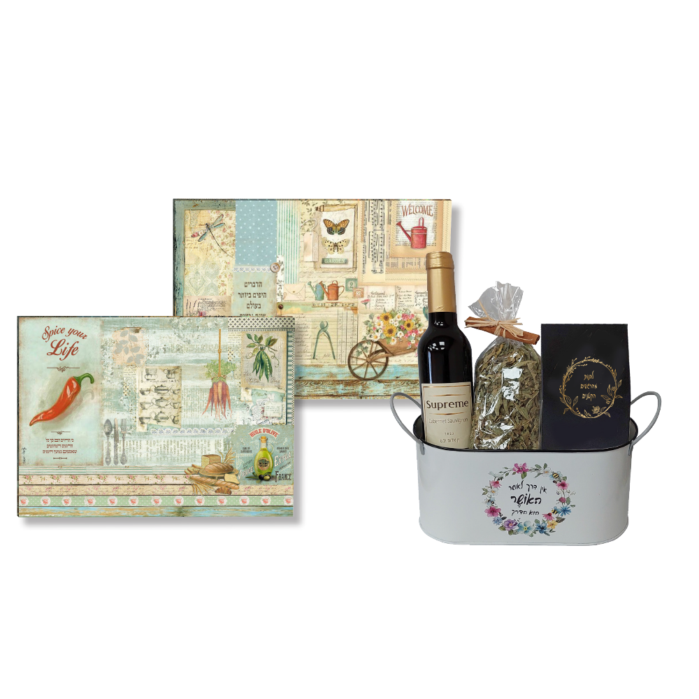 מארז מתנה אלגנטי וחגיגי לראש השנה, המשלב בין טעמים מפנקים לשימושיות אמיתית. המארז כולל בקבוק יין איכותי (375 מ"ל), קופסת שוקולד ספיר שחורה עם צימוק בעיטוף שוקולד לבן, חליטת צמחים מרגיעה, מקלות קינמון לקישוט, וקרש חיתוך מזכוכית בגודל 35×25 ס"מ – מושלם לאירוח חגיגי.