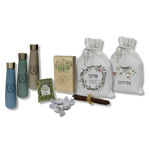 מארז דפנה לפסח המכיל שקית לאפיקומן עם תרמוס, 3 פרלינים, חליטת צמחים ומקלות קינמון גדולים