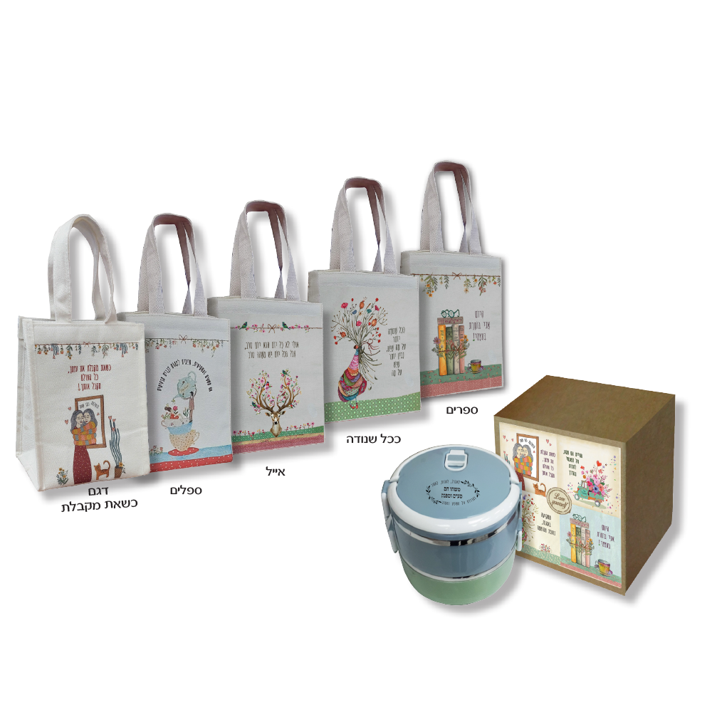 מתנה מושלמת ליום האישה הכוללת צידנית קנבס אישית בגודל 20×24 ס"מ וסט של 2 קופסאות אוכל תרמיות בגודל 13.5×15 ס"מ עם נירוסטה פנימית איכותית לשמירה על חום וקור. זמין בדגמי love yourself, ככל שנודה, ספלים ואייל.