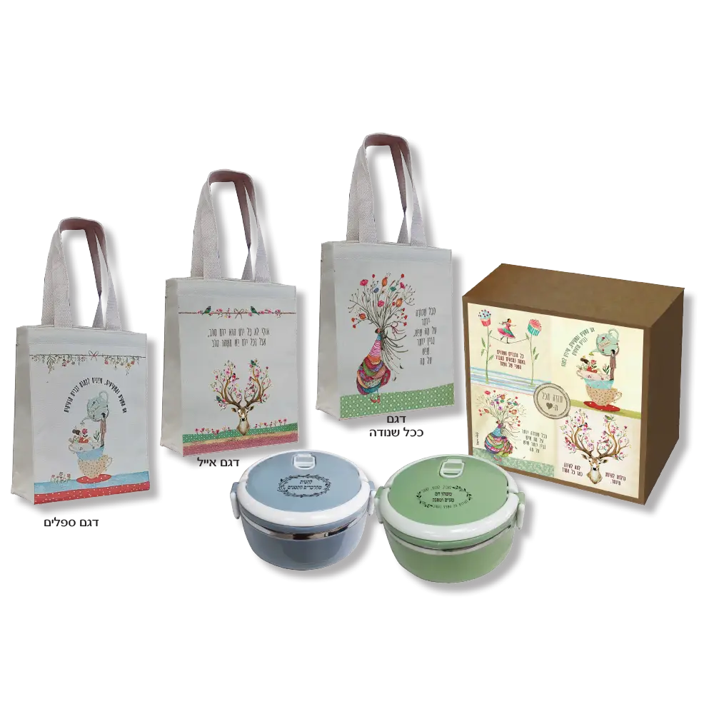 צידנית קנווס אישית בגודל 20×24 ס"מ יחד עם קופסת אוכל תרמית תואמת (7.5×15 ס”מ). מארז בעיצוב נקי ונוח לנשיאה – אידאלי ליום עבודה מלא או לטיול קצר.