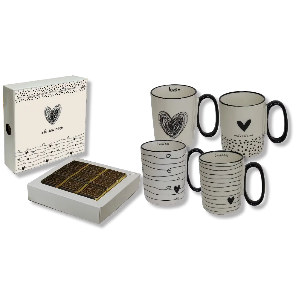 ספל קרמי מעוצב מלא באהבה – עם שוקולד מריר 70% (נפוליטנים איכותיים).