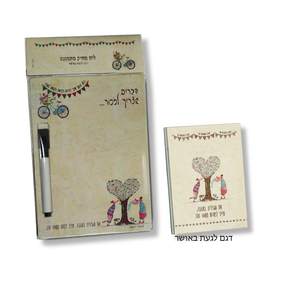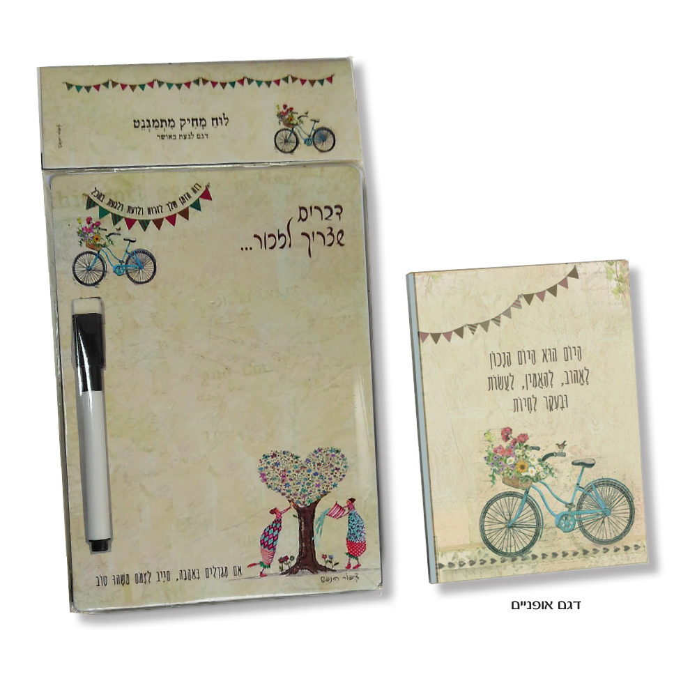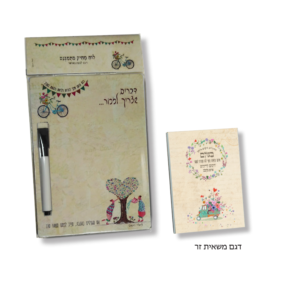 לוח מחיק מתמגנט עם טוש מחיק מתמגנט ופנקס גודל הלוח 15×20, גודל הפנקס 15×10 ס"מ
