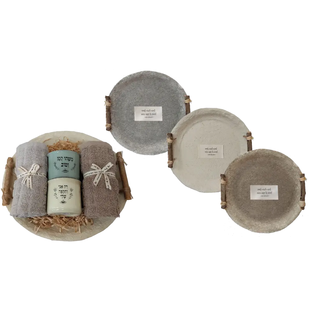 קוטר המגש 32.5 ס"מ, המגבות והקערות מגיעות בגוונים שונים בהתאם לקיים במלאי