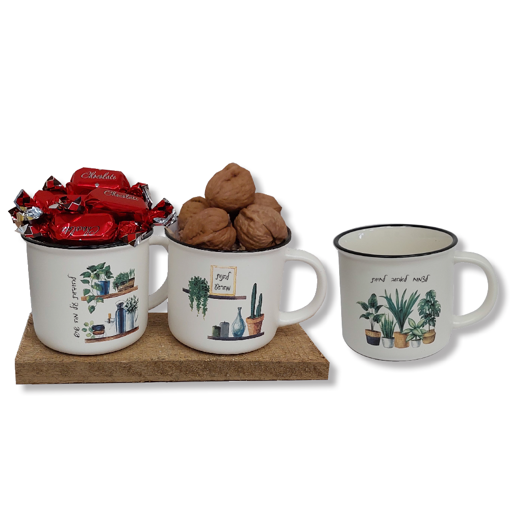 2 ספלי קקטוסים עם 5 פרלינים ו-5 אגוזים הספלים מגיעים בעיצובים שונים בהתאם לקיים במלאי *הלוח עץ הינו קרש פשוט המיועד לצורכי אירוז