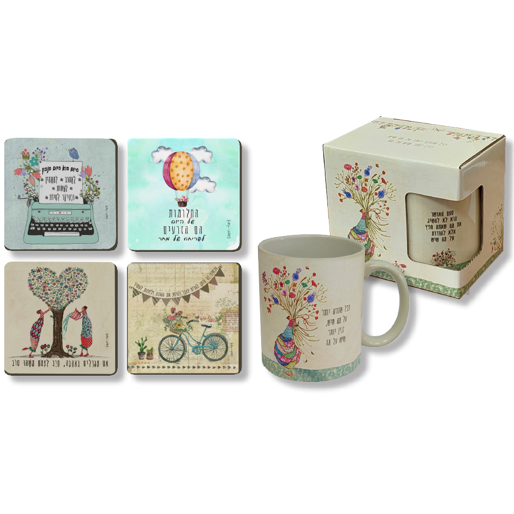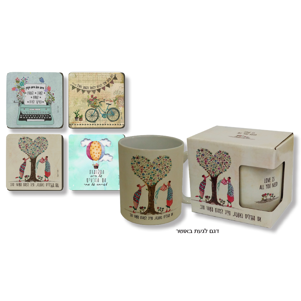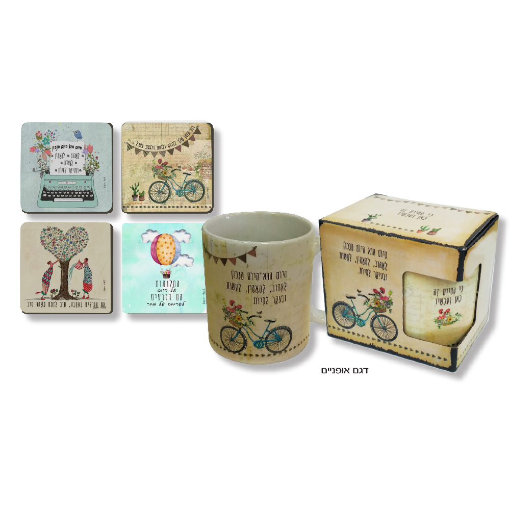 ספל במארז מעוצב ו-4 תחתיות לכוסות