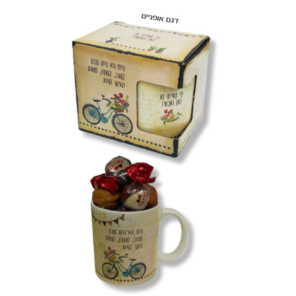 ספל במארז מעוצב עם 3 פרלינים ו-2 אגוזים