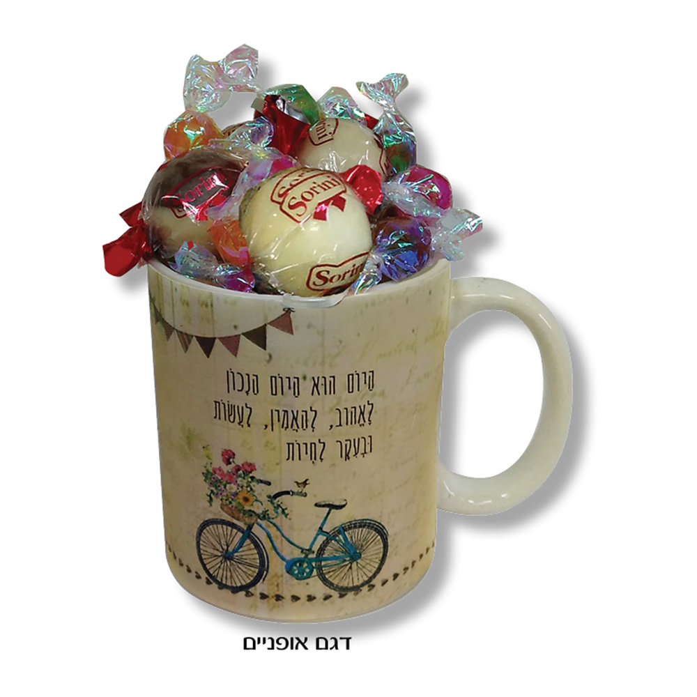 ספל מעוצב עם 3 פרלינים ו-10 סוכריות יהלום ספל אחד לבחירה