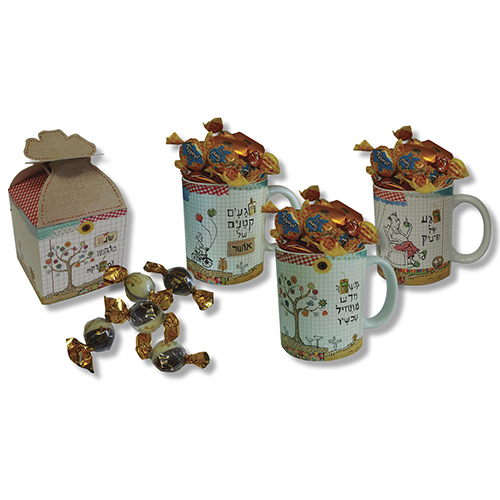 ספל מעוצב עם 7 סוכריות דבש, קופסת פרפר מעוצבת לראש השנה עם 5 פרלינים