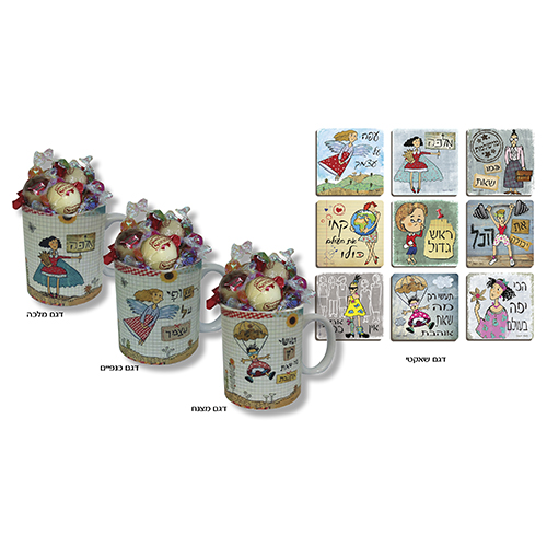 ספל מעוצב עם 3 פרלינים ו-10 סוכריות יהלום, תחתית אחת מעץ לבחירה לבחירה תחתית אחת, מידת התחתית 9×9 ס"מ, ספל אחד לבחירה