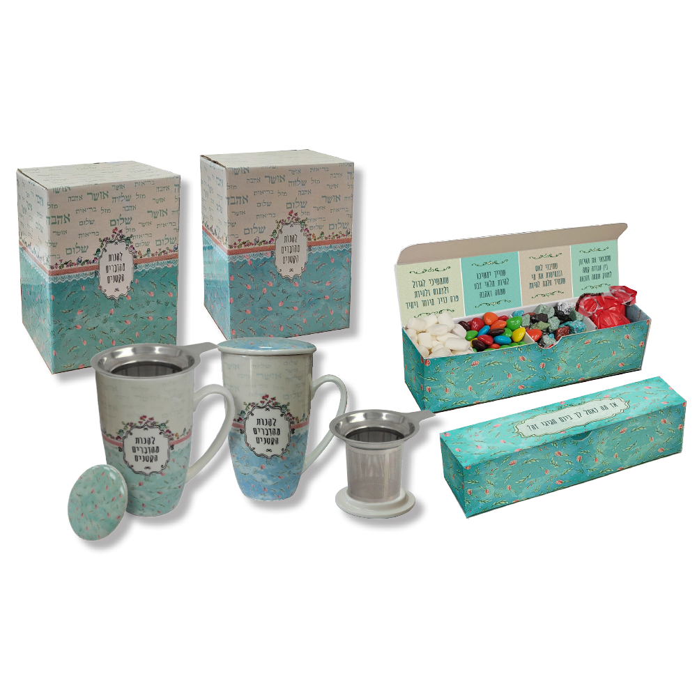 ספל עם דיפיוזר לחליטת תה, לצד מארז ברכות בעיצוב אישי ליום האישה. מתנה שמחברת בין חום אישי לפינוק ייחודי, מושלמת לעובדות וללקוחות.