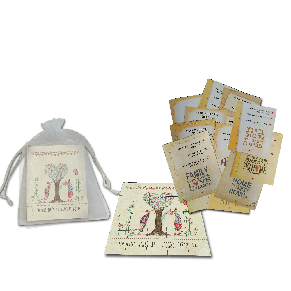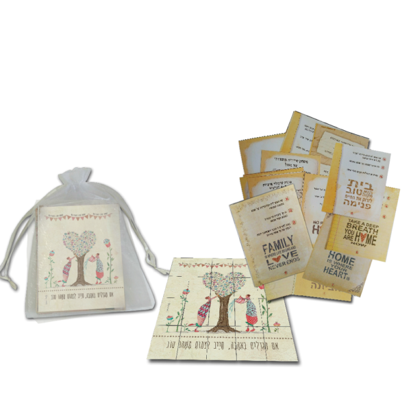 הערכה מכילה 24 כרטיסיות עם שאלות טריוויה ליום המשפחה, 10 טיפים למשפחה מאושרת, מתכונים להכנה עם ילדים ופאזל מהצד האחורי של הכרטיסים (מידת הכרטיסיות 9.5 על 12 ס"מ)