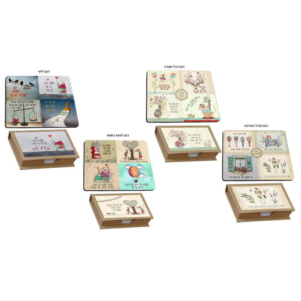מארז מקורי הכולל פד לעכבר בגודל 19×23 ס"מ יחד עם סטנד מעוצב לדפי ממו בגודל 12×8.5 ס"מ – שילוב אידיאלי בין פונקציונליות לנראות.