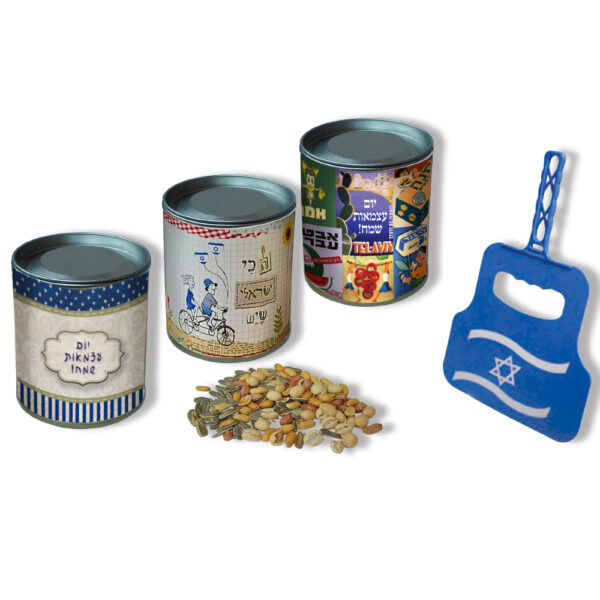 פחית עם מיקס פיצוחים ונפנף עם דגל ישראל, גובה הפחית 8 ס”מ, פיצוחים 120 גר'