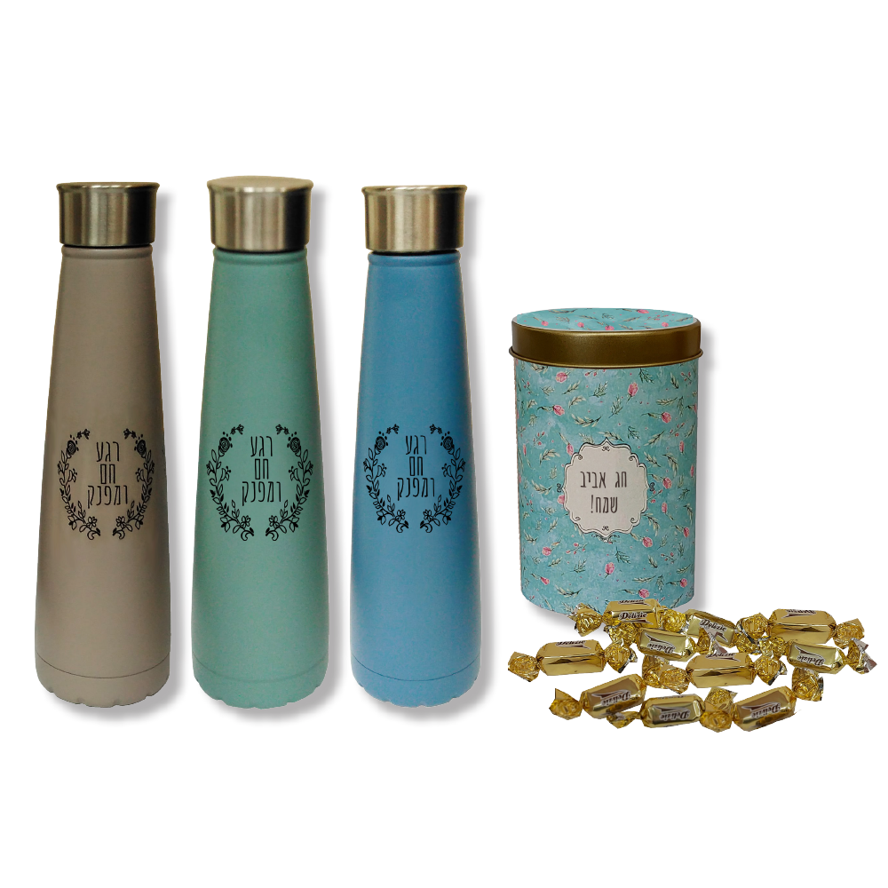 מתנה פרקטית ומרשימה לחג – פחית עם 10 פרלינים מובחרים יחד עם תרמוס מעוצב בנפח 450 מ"ל לשמירה על חום או קור לאורך זמן. הבחירה המושלמת כמתנה לעובדים ולקוחות בחג הפסח.