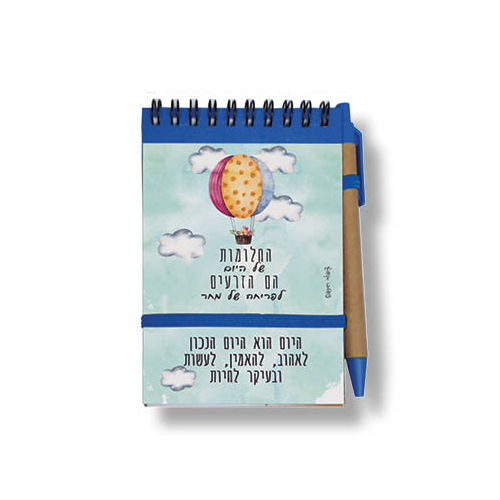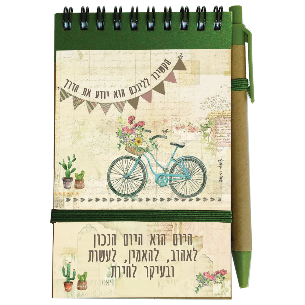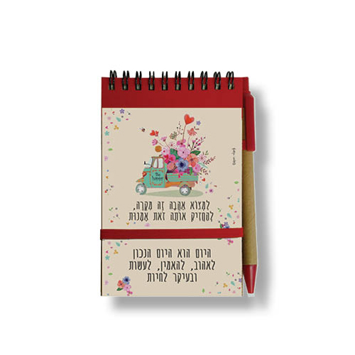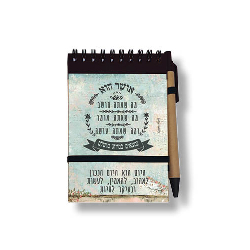 מידת הפנקס A6 עם כריכה קשה, סגר גומי, 60 דף שורה. נייר ממוחזר 80 גרם, עט מצורף, ארוז באריזת קרטון לבנה. מידה: 10×15 ס”מ, צבעים לפי הקיים במלאי