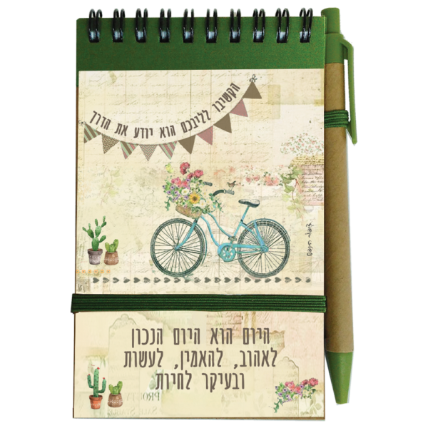 מידת הפנקס A6 עם כריכה קשה, סגר גומי, 60 דף שורה. נייר ממוחזר 80 גרם, עט מצורף, ארוז באריזת קרטון לבנה. מידה: 10×15 ס”מ, צבעים לפי הקיים במלאי