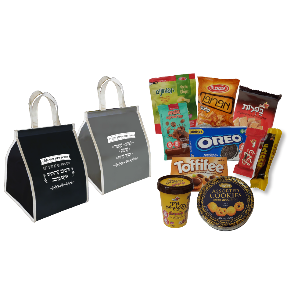 מתנה שהיא גם פרקטית וגם מפנקת במיוחד: צידנית איכותית ואלגנטית בגודל 30×40 ס"מ, מלאה בכל טוב – חטיפים אהובים כמו טופיפי, עוגיות אוראו, עוגיות חמאה, אפרופו, בפלות, מיקס קורנפלקס, מיני פינוקיות ו-2 חטיפי שוקולד.