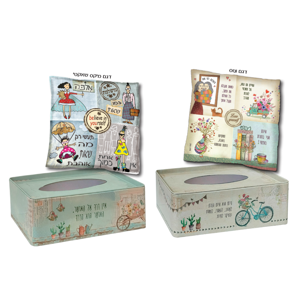פרטים טכניים: • קופסה לטישו • כרית חימום בגודל 19×19 ס"מ • גודל הקופסה: 21.5×11.5×7 ס"מ • דגמים לבחירה: מיקס שאקטי, ונוס