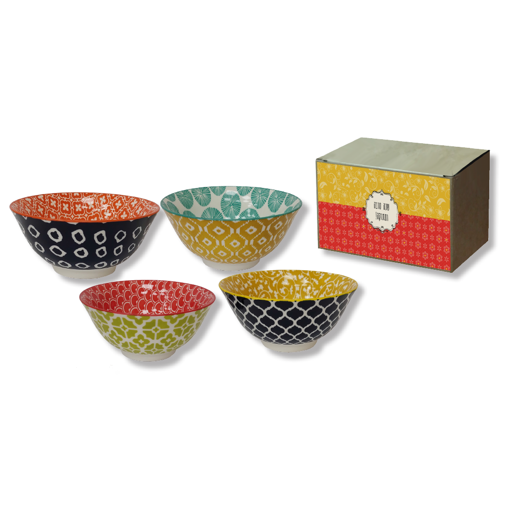 קערת קרמיקה צבעונית בגודל 15.5×7 ס"מ, מגיעה באריזת מתנה מהודרת ובמבחר עיצובים משתנים. מתנה אלגנטית עם נראות גבוהה – מושלמת כמתנה לראש השנה עם טאץ' ייחודי.
