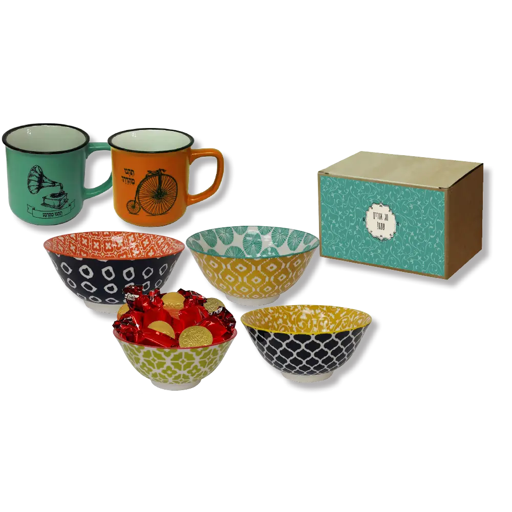 קערת קרמיקה צבעונית עם 8 פרלינים ו-5 מטבעות שוקולד, בשילוב ספל קרמיקה תואם – סט שמעניק חוויה שלמה של טעם, אסתטיקה ונוחות. מתנות לחנוכה כאלו הופכות כל רגע לשעת פינוק חורפית, בין אם בבית או במשרד.