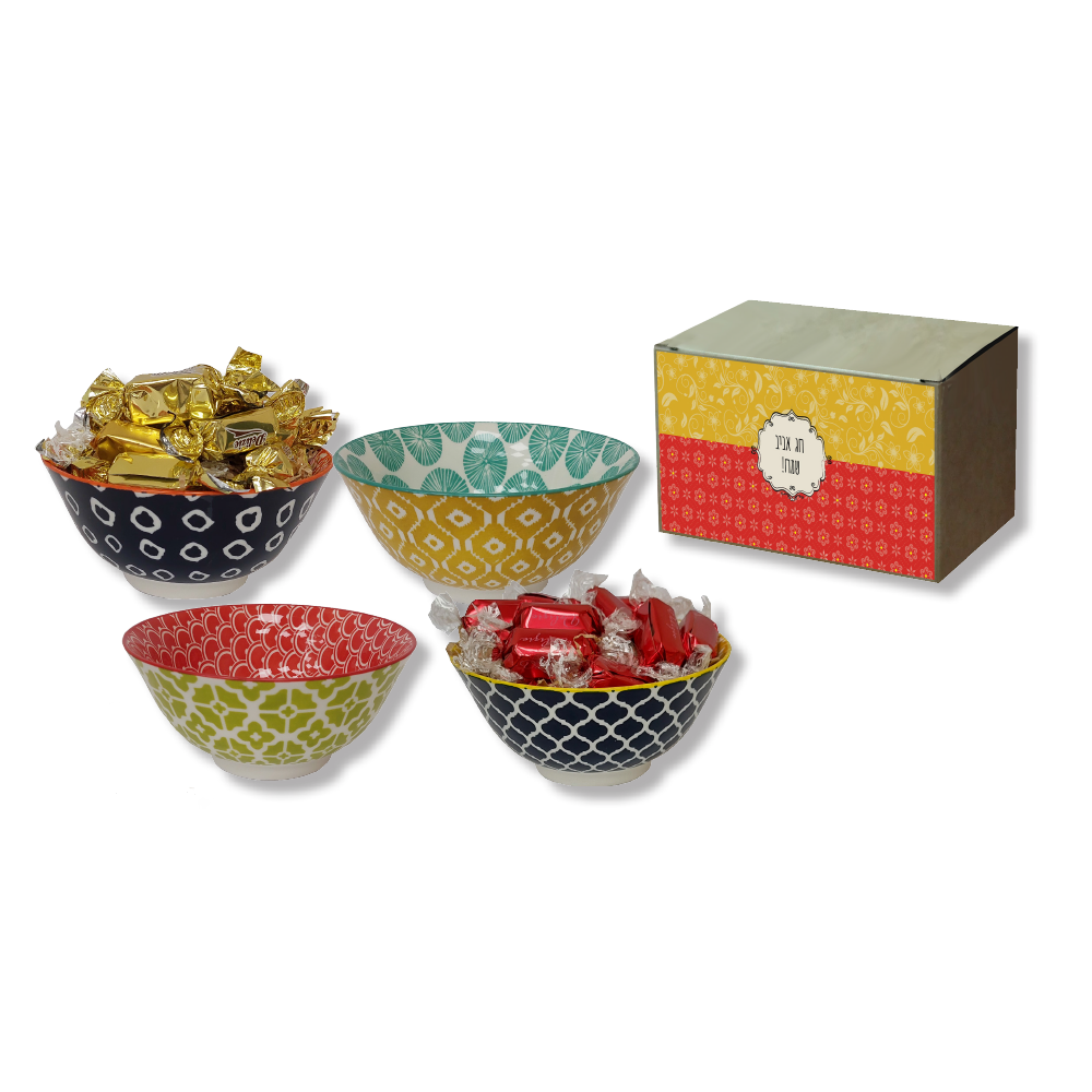 קערת קרמיקה צבעונית ופרלינים – מתנה לפסח שמשלבת יופי וטעם