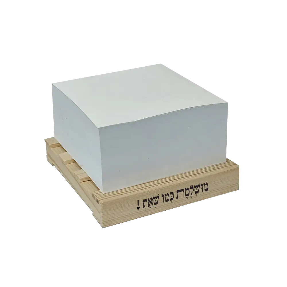 מעמד עץ איכותי לנייר ממו בגודל קומפקטי ונוח לשולחן העבודה. מתנה למורה שהיא גם שימושית וגם מעוצבת, ומתאימה לכל סביבת עבודה משרדית או כיתתית.