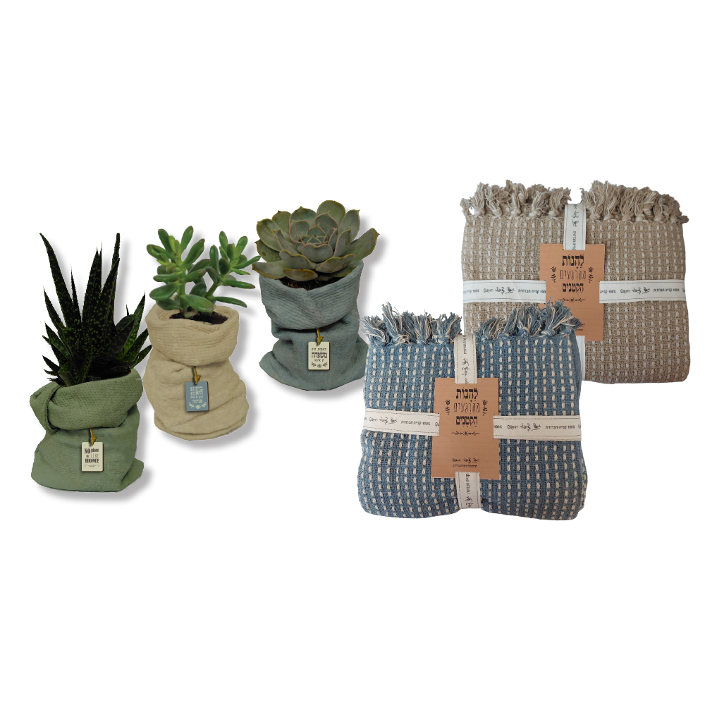 כולל שמיכה בגוון טבעי או כחול + עציץ בעיצוב משתנה לפי מלאי