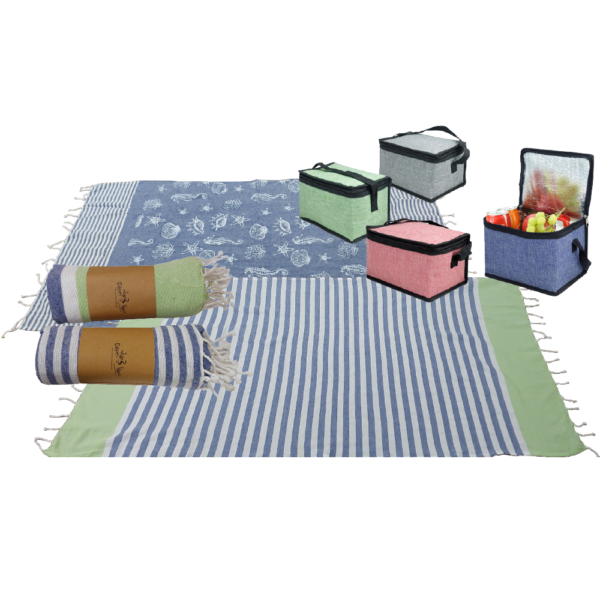 שמיכת חוף וצידנית אישית אייסטון גודל שמיכה 90 על 180 ס"מ, צידנית 22x16x15.5 ס”מ, 5.5 ליטר