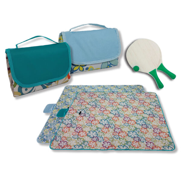 שמיכת פיקניק וסט מטקות 8 מ”מ וכדור גודל השמיכה 145×180 ס"מ, המטקות מגיעות בצבעים שונים בהתאם לקיים במלאי